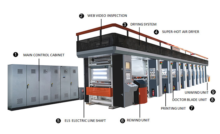 设置装备摆设(8色凹版印刷机) | 电子轴凹版印刷机 | |||